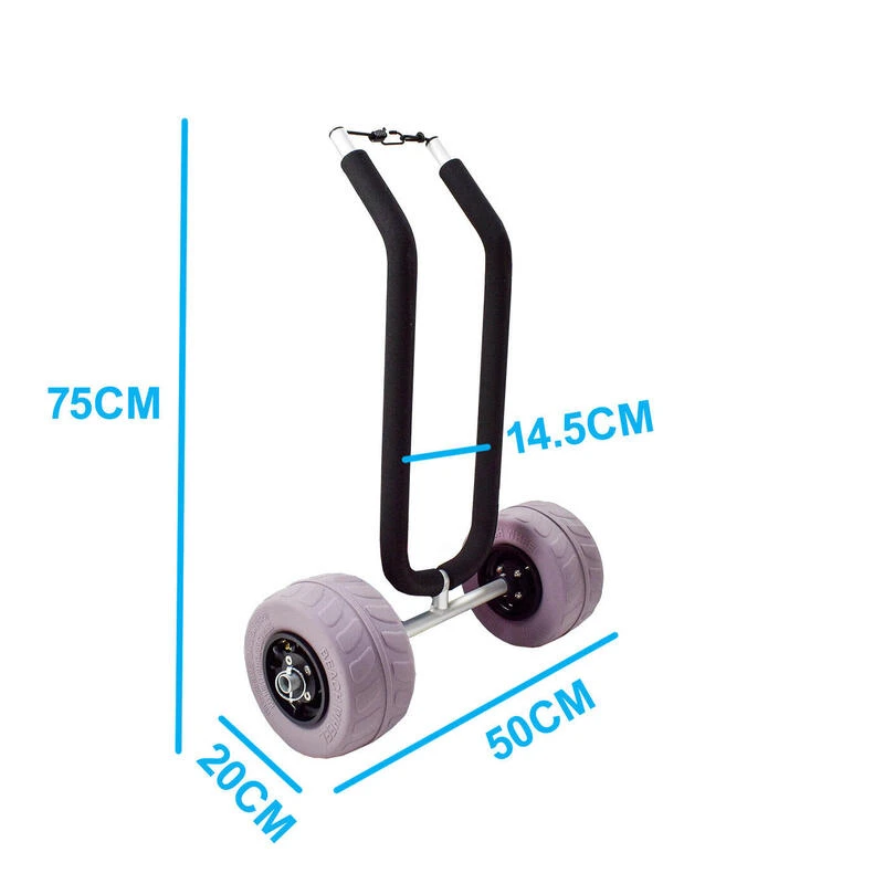 Chariot pour planche de surf ou SUP. Entièrement en aluminium, léger, résistant et antirouille. Idéal pour transporter votre équipement sans effort grâce à ses roues.