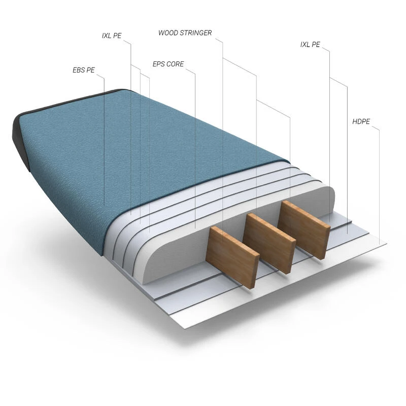 Noyau en EPS (polystyrène expansé ) renforcé avec 3 stringers en bois .